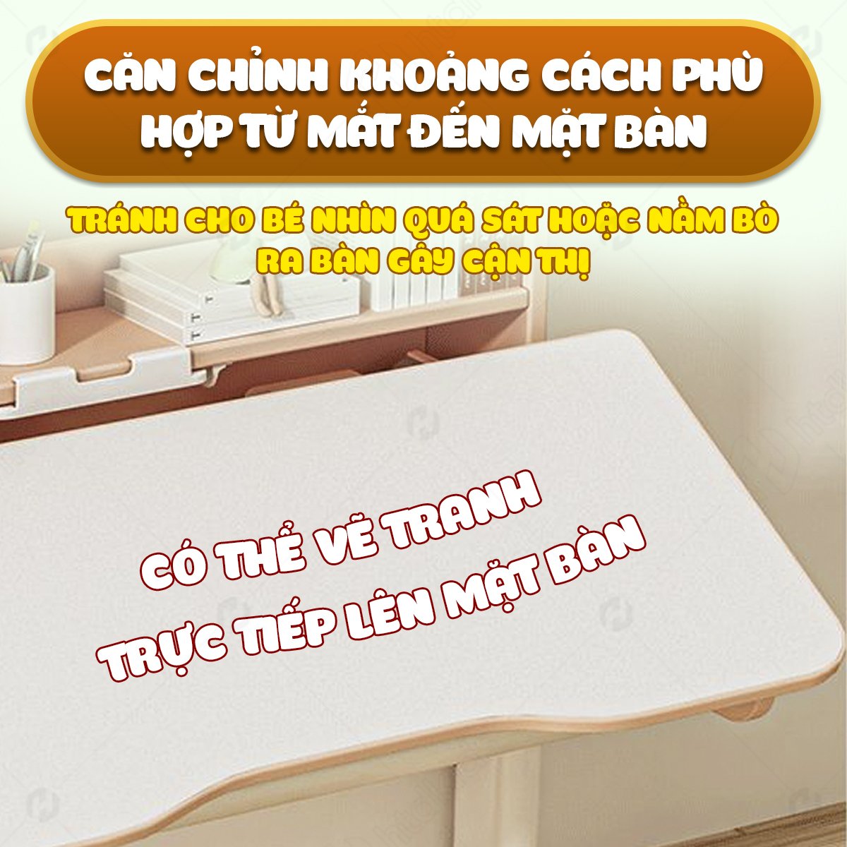✔ Mặt bàn điều chỉnh được độ nghiêng phù hợp với nhiều hoạt động như đọc, viết, vẽ.