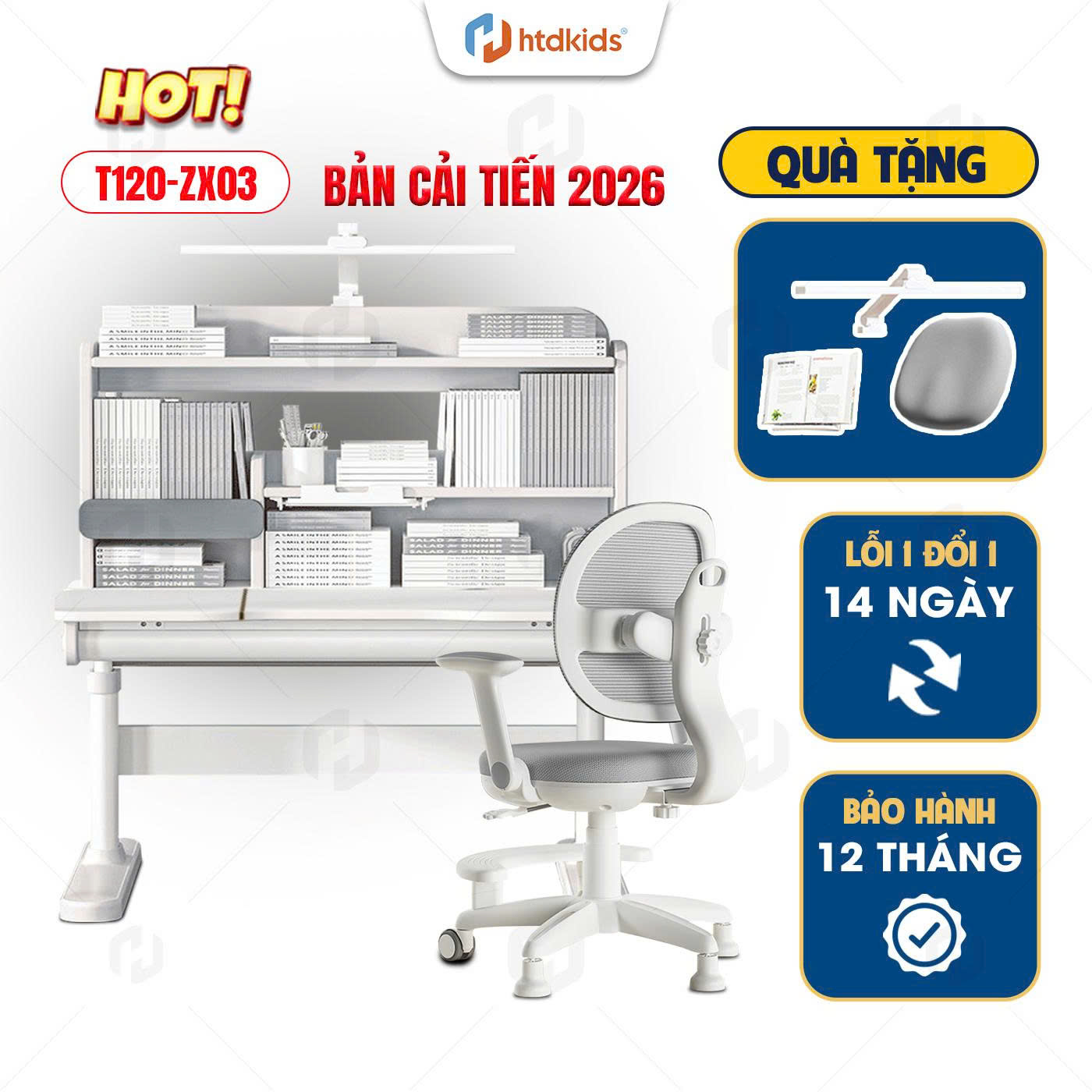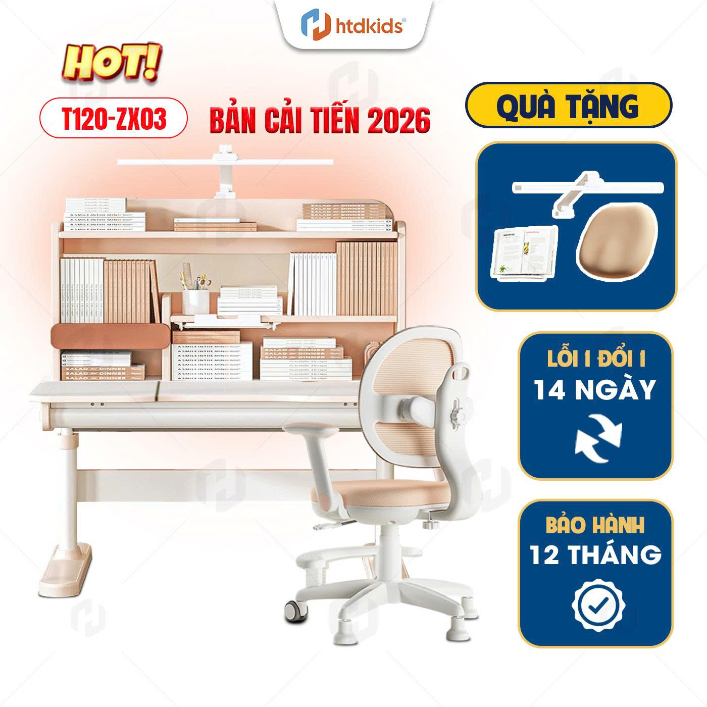 Bộ bàn học cho bé HTDkids T100 + ZX03 | T120+ZX03 là sản phẩm bàn ghế học sinh thông minh được thiết kế theo tiêu chuẩn công thái học (ergonomic), giúp trẻ ngồi đúng tư thế và phát triển toàn diện trong giai đoạn học tập quan trọng.